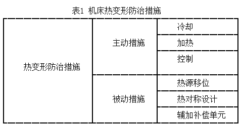 陶瓷磨床的剛度一直是人們關注的重點。引起機床結構變形的主要因素包括熱變形、靜載荷、動載荷以及殘余應力等。其中,熱變形是機床變形的主要因素,因為機床結構的熱變形將會引起工件相對砂輪位置的改變。為了減少溫度場對機床結構的影響,可以采用各種措施,包括主動措施和被動措施,如表1所列。