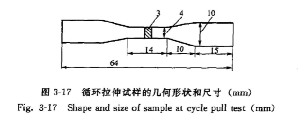 眾所周知,在較低的溫度或應(yīng)應(yīng)下促進(jìn)陶瓷超塑性變形的方法之一就是細(xì)化晶粒尺寸,而納米周瓷則是利用減小晶粒尺寸后,無(wú)序晶界的體積分?jǐn)?shù)會(huì)大幅度提高,有可能室溫脆性陶瓷將成為延性的。本研究的目的就是為了探求納米陶瓷室溫循環(huán)變形的可能行為和機(jī)理,通過(guò)熱壓方法( Fujidempace400kN熱壓爐)首先制制得得4mmX64mm×64mm的塊狀材料,然后加工成具有14mm標(biāo)距長(zhǎng)度的樣品,它們的幾何形狀和尺寸見(jiàn)圖3-17。