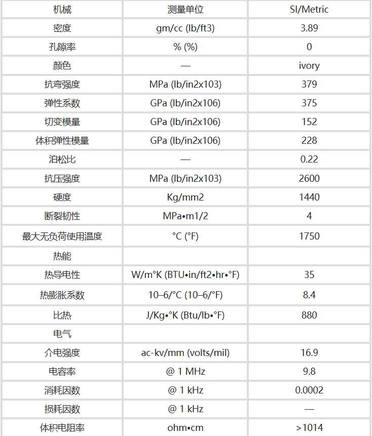 氧化鋁陶瓷有不同含量成分的,例如95,96,99,995,998氧化鋁陶瓷,每種材料的技術(shù)參數(shù)以及性能都會有些差異,下面科眾陶瓷廠主要講解995氧化鋁陶瓷的技術(shù)參數(shù)。