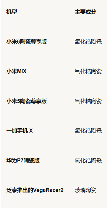 手機(jī)上陶瓷有哪些?